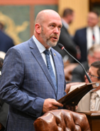 The effort was led by state Representative Mike Harris (R-Waterford) (pictured testifying on the bill package before the Michigan House), Chair, House Insurance Committee. Prior to his election to the Michigan House in 2022, Rep. Harris spent 26 years in law enforcement, where he investigated insurance fraud while on the force and as a private investigator.